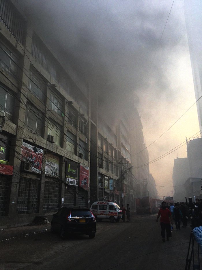 After struggling for eight hours, firefighters on Monday extinguished a fire which erupted in a building on the city's II Chundrigar Road. Sources said the fire broke out at 5am in Techno City Plaza and an operation to help people evacuate the building began shortly after. Rescue sources said 11 people stuck on the building’s fifth floor were safely evacuated through a snorkel. Sindh Local Government Minister Saeed Ghani while speaking to the media said a short circuit was the likely cause of the fire. “No loss of life was reported,” he added. A representative from the emergency response team said at least four fire brigades were engaged in the operation. Pakistan Navy fire tenders also took part in the rescue operation.