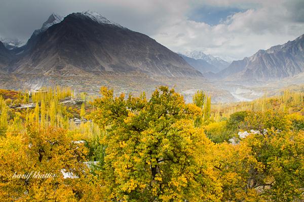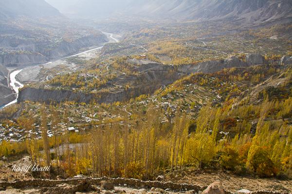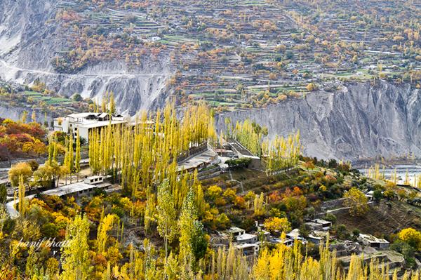 A walk through the villages with terraced fields is a pleasant experience and one might get an invitation at a local house for a cup of tea. The bazaar of Karimabad is colorful and interesting for the shoppers. The main items of interest include: local handicrafts, souvenirs, hand woven rugs, embroidered caps, Old Settlement of Ganesh shawls, hand woven cloth known as pattu or Patti and gemstones etc. A day hike through the narrow gorge of Ultar, jumping over loose boulders is a demanding walk, however reaching the snout of Ultar Glacier and the view of the valley by jeeps offers interesting view of sweeping and crevassed glaciers. Ganesh is a small but fast developing village on the KKH. A visit to Ganesh village is interesting with its famous rock inscriptions known as sacred rocks of Ganesh.
