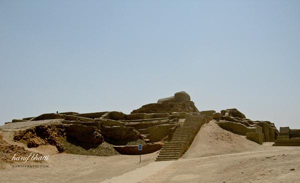 Mohenjo-daro is located 25 km southwest of Larkana in Sindh, Pakistan, on a Pleistocene ridge in the middle of the flood plain of the Indus River Valley. The ridge is now buried by the flooding of the plains, but was prominent during the time of the Indus Valley Civilization, alloweing the city to stand above the surrounding plain. The site occupies a central position between the Indus River valley on the west and the Ghaggar-Hakra river on the east. The Indus still flows to the east of the site, but the Ghaggar-Hakra riverbed is now dry.