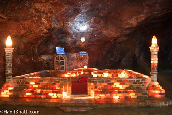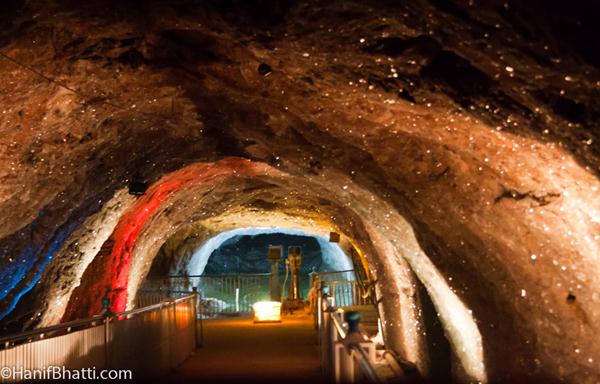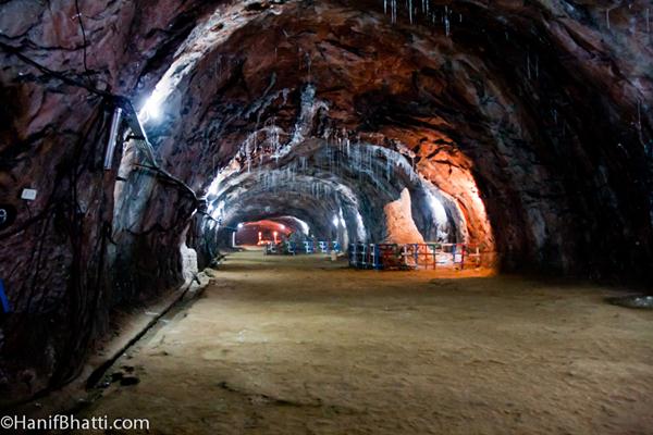 Khewra Salt Mines is a salt mine located in Khewra, Jhelum District, Punjab in Pakistan, about 160 kilometres (99 mi) from Islamabad and 260 kilometres (160 mi) from Lahore. It attracts up to 40,000 visitors per year and is the second largest salt mine in the world. Situated in the foothillsof the Salt Range, the Khewra Salt Mines are the oldest in the South Asia.
