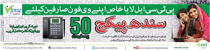 PTCL launched especial package for the People of sindh, in which Vfone customers can talk for just 0.50 Paisa per min.