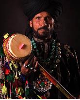 For most of his life Zahoor performed mainly in dargahs (Sufi tombs/shrines) and festivals, and in the streets. He adopted the folk instrument Ektara (ek= one, tar = string), in its three-stringed version called Tumbi, as his main instrument. Like some traditions of Sufi music, he has a passionate, high-energy style of singing, often dancing in a frenzied style with the tassels on his instrument whirling around him. His typical costume includes embroidered (kurta), beads, tightly bound turban, as well as ghungroos (anklet-bells worn by dancers). His voice has an earthy tone, almost cracking at the edges, but capable of a wide vocal and emotional range.