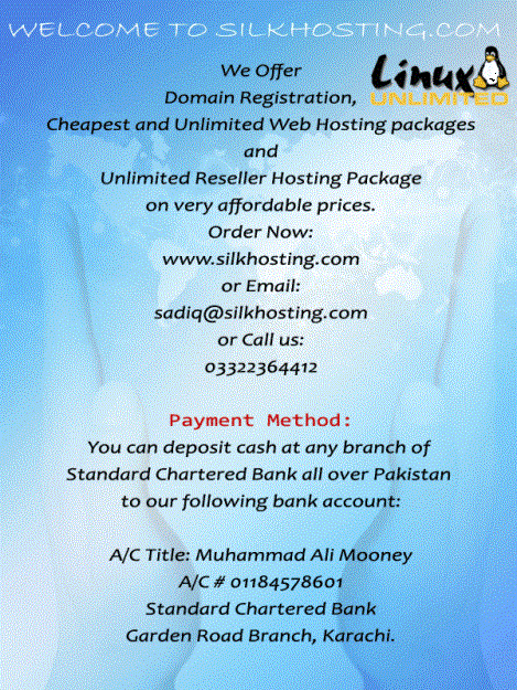 We offer Domain registration,Web hosting and Reseller Hosting packages on very cheapest rates.