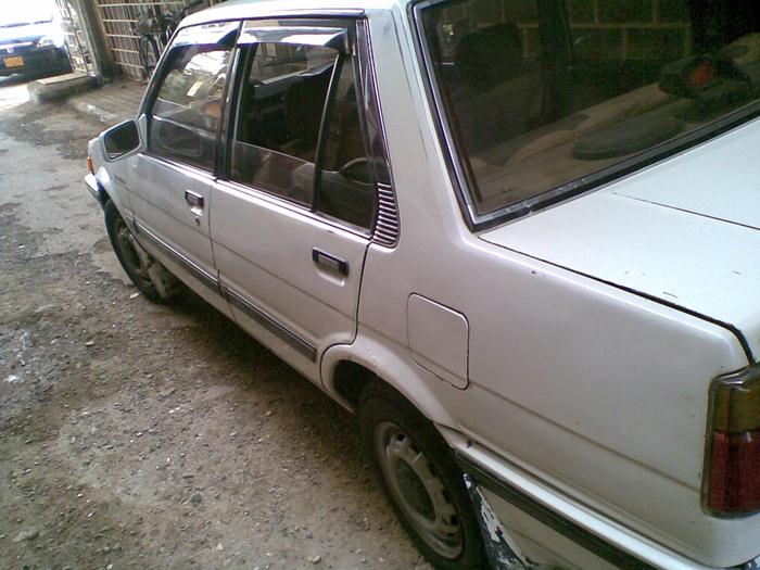 **corolla 86 recnditn 96, original Gl saloon, maroon interior, brown glasses, white color,powerfull engine, bumper to bumper genuine, ac, cng, petrol, 5 brand new tyres, central locking, key less entry, power windows, power staring, cassate player with kenwood speakers, return file , cplc clear,