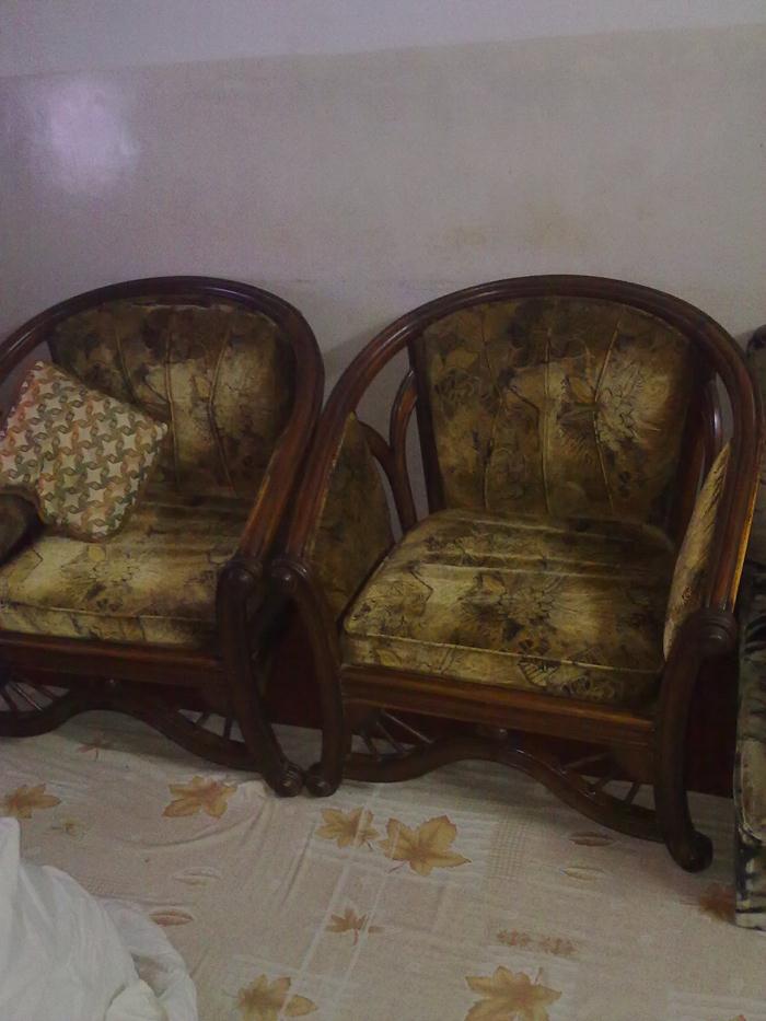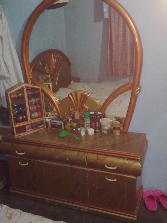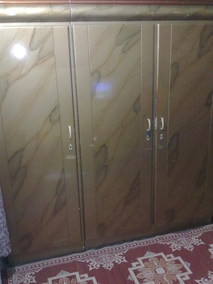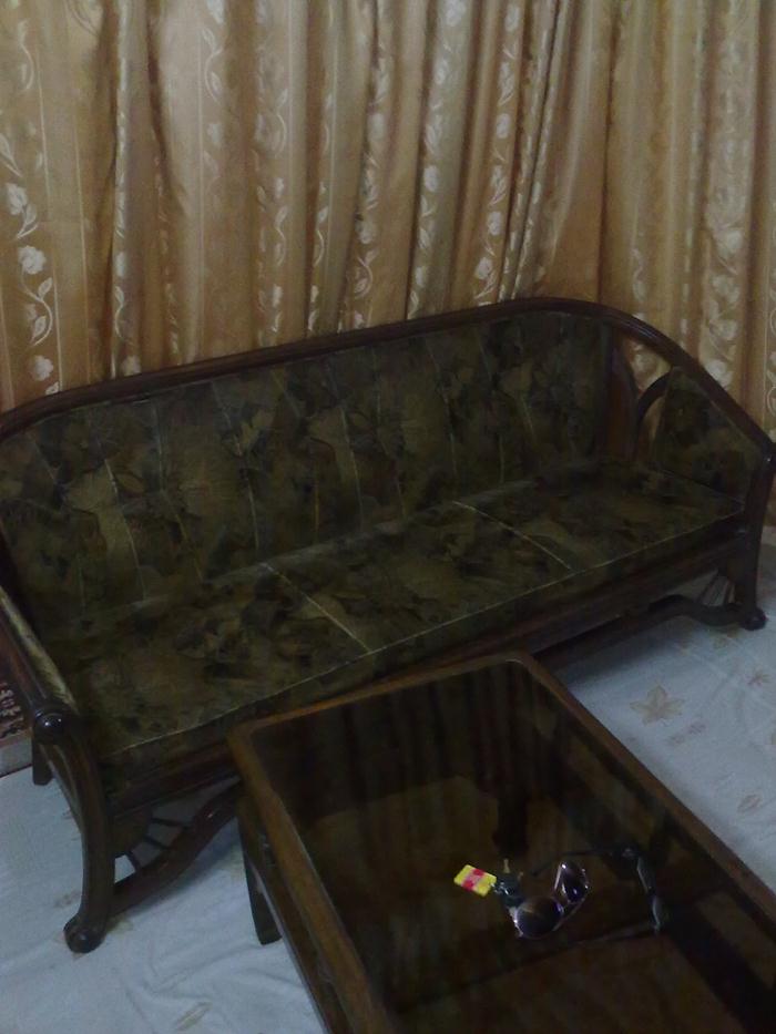 Furniture 1 Double Bed , 1 Dressing table, 1 Divider , 3 door cupboard and 2 sofa seats with 3 pieces table ... only in PKR 30,000