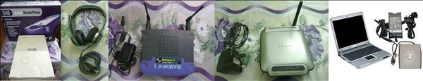 I have few computer accessories for sale. 1) Belkin Wireless Router. (Price Rs.2000) 2) Linksys Wireless-G Access Point with SES. (Price Rs.2000) 3) 2 Logitech USB Headphone with MIC. (Price Rs.3000 for one piece) 4) Scanner (Acer Scan Prisa 640P) Only Scanner no connecting cable from scanner to computer and no adapter, Only scanner with box. (Price Rs.3000) These all are in working condition. 5) DEAD Dell Latitude X-300 Laptop with DVD External Drive and Charger Ram 512mb and no Harddisk. (Price Rs.5000) Only sincere buyer can contact via e-mail (