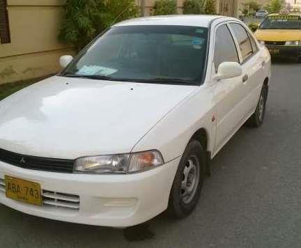 Lancer model 1997, white colour, excellent condition, new tyres, new battery, leather seats, chilling AC and CNG. Under use with Army Officer