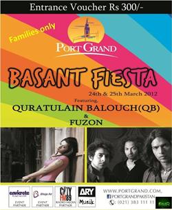 BASANT FIESTA 24th of March , Port Grand featuring Quratulain Balouch (QB) & Fuzon Musical Concert. Tickets available at Port Grand,