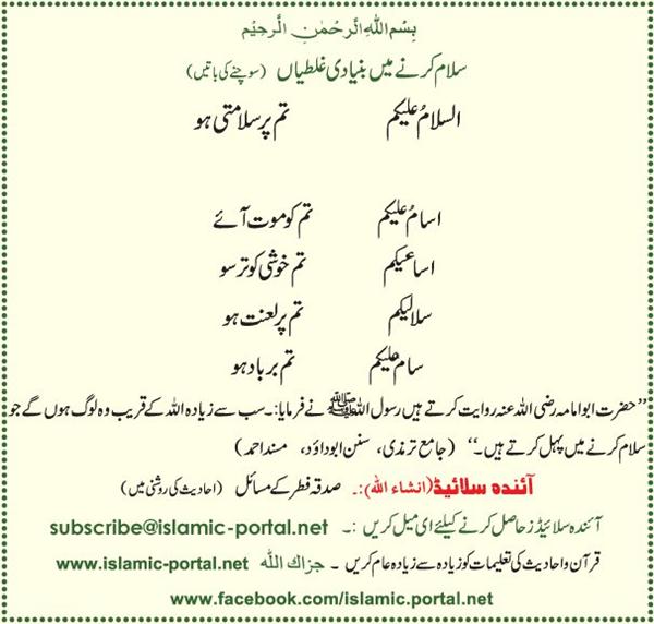 thanks mama... wo log khaas tor pe ehtyaat kya karen... jo khaali "salam" kehte hain ya likhte hain plz kahi b kisi ko suno ya dekho to unko batao k ye galat hy...