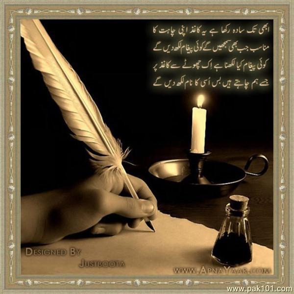 Khaali jaam liye baithe ho,un aankhon ki baat karo, Raat bahut hai, pyaas bahut hai, Baarsaton ki baat karo,Jo peekar mast huey hain un ke ziker se kya hasil Jin tak jaam nahin pahuncha hai un pyaason ki baat karo Chup rehney se kut na sakegi saadiyon lambi raat yahan, Jin yaadon se dil roshan hai, un yaadon ki baat karo Phir palkon par jugnu chamke,aankhon mein ghata si lehrai Thandi hawa ka ziker karo, Kuch bheegi ruton ki baat karo Raat bahut hai, pyaas bahut hai, Baarsaton ki baat karo, Khaali jaam liye baithe ho, un aankhonki baat karo..
