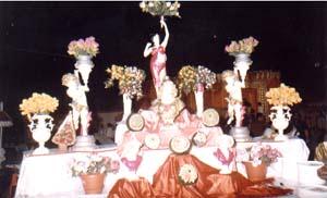 Han flowers hain. Statues hain they r holding flowers....