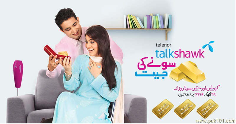 Telenor paish karta hai sone ki jeet offer jis me shamil hone k liy win likh k 7775 pe bhejein ya *888# milaein charges=10+tax/sms.