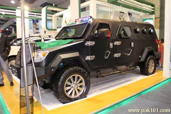 Subject : Made in Pakistan Made in Pakistan Bullet Proof Vehicle - UQAAB Pakistan has made a bullet proof vehicle UQAAB, equipped with latest technologies. It is designed for military personnel and VIP transport. Full vehicle is protected with certified CEN B7/NIK IV armor which is equivalent to a 7.62 x 51 mm weapon shooting at 30 meters. Armor includes front, sides, rear, floor and roof. This monster vehicle is designed to protect driver and passengers from any incoming threat from any angle. It is also equipped with several armor enhancements such as a blast mitigation floor mat, provided with a roof turret, machine guns, spring loaded gun ports are integrated at each seat, Heating, ventilation and air condition system, automatic fire engine suspension and heavy duty 300 AMP Alternator. It is built on a heavy duty chassis, equipped with powerful engine and intelligent AWD system.