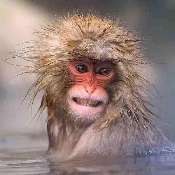 monkey in hot natural water.
