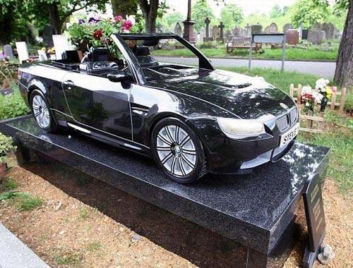this is the grave of a person..the grave has a stone replica of bmw car on it... the man always wanted to have bmw
