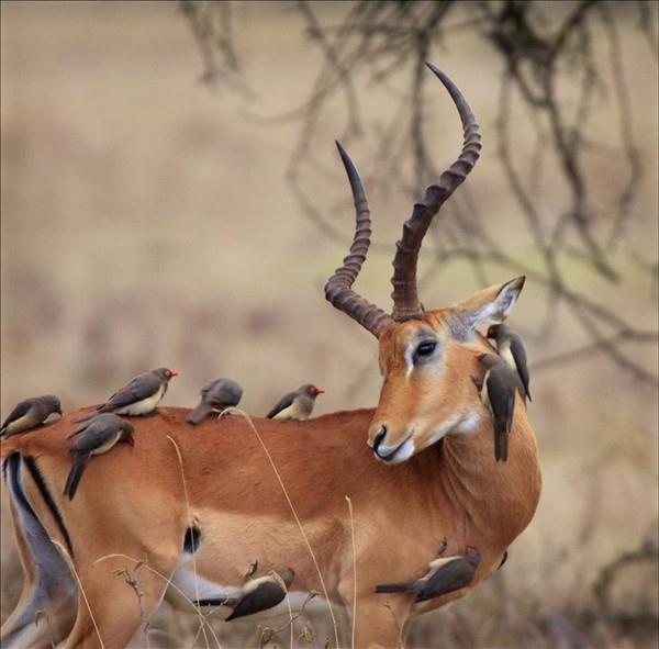 the birds will eat parasites from the body of deer.