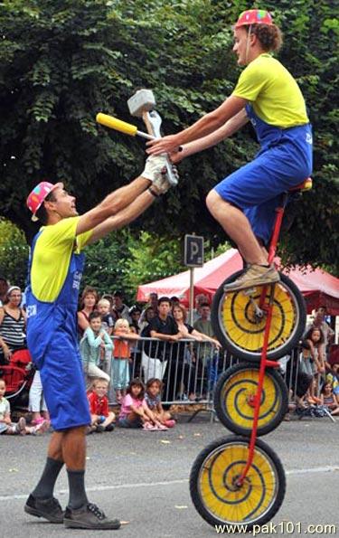 riding such a big unicycle is really difficult