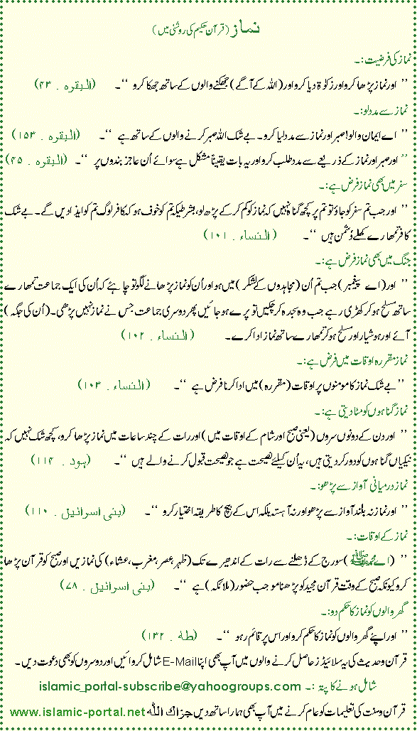 Subject : namaz quran ki roshni may