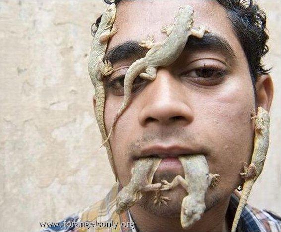 silly... this guy must be having the dirty crap of lizards in this mouth also.