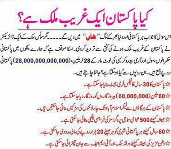 pakistan is not poor but ppakistani s have made it poor but y who is responsible ? Pakistan gareeb nahi is k kuttae hukamrano nae is ko gareeb kar dia hai ur gareeb kartae ja rahe hainsab farg hain IMRAN KHAN ko ab azmana hain so join http://www.facebook.com/media/set/?set=a.232063583491361.65141.100000631638998&saved#!/pages/Pakistan-Tehreek-e-Insaaf-PP156-PP155-NA-125/156823594386468