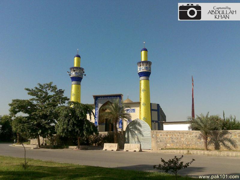 A picture of a lovely Mosque with golden pillars at Islamabad