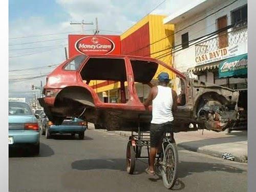 car on cycle.. russin funny pictures