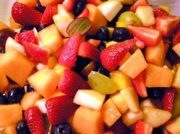 Substitute fruit for what is fresh and available. The ingredients listed above reflect what was on sale during one trip to the grocery store. The mangos are especially good with the strawberries and blueberries. Bananas and raspberries would have been a good addition. Unless the cantaloupe is really sweet, it should be left out.
