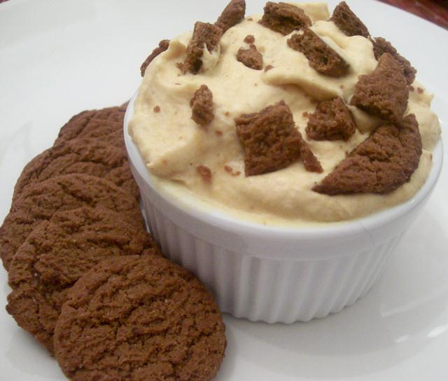 Pour into a serving dish and crumble the ginger snaps over top before serving.