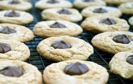 As soon as you remove the cookies from the oven, place a chocolate star on the top of each cookie.