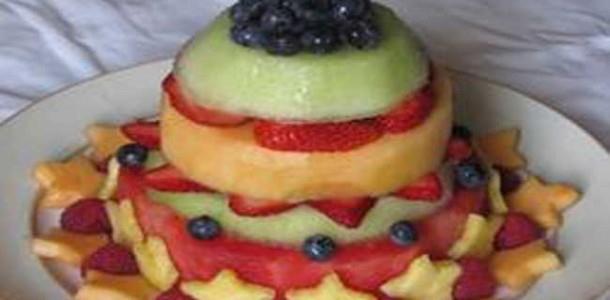 Alternate layering sliced Strawberries, slices of cantaloupe, slices of fresh pineapple.