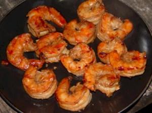 Stir and fry for a few minutes until the butter separates then gently put the prawns into the frying pan and stir carefully.
