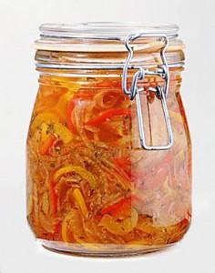 Heat the remaining oil and pour over the pickle as a thin layer. Stays fine for 1 month.