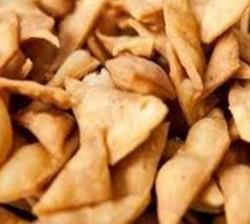 Slice this layer in 2'' x 2'' rectangles Fry in deep oil till they turn light brown. Serve with tea as snack.
