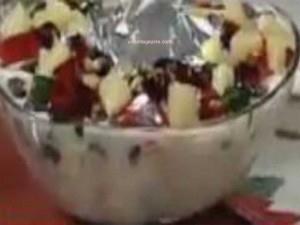 Then add Jellies (Banana, Mango and strawberrys) and remaining dry fruits form top.Decorate withSilver foil, Strawberries and cherries and serve chilled.