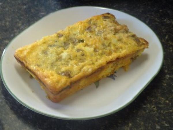 Preheat the oven to 180C/350F. Beat 2 eggs until fluffy and pour into a greased loaf pan.