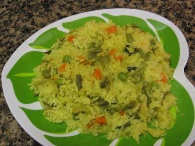 After ten minutes when rice will be cooked turn the flame on low and let it simmer for 10 more minutes.