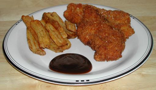 Dip the chicken fingers in the prepared batter, then roll in bread crumbs.