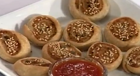Seal the edges with water & roll twice.Cut the roll into pieces.