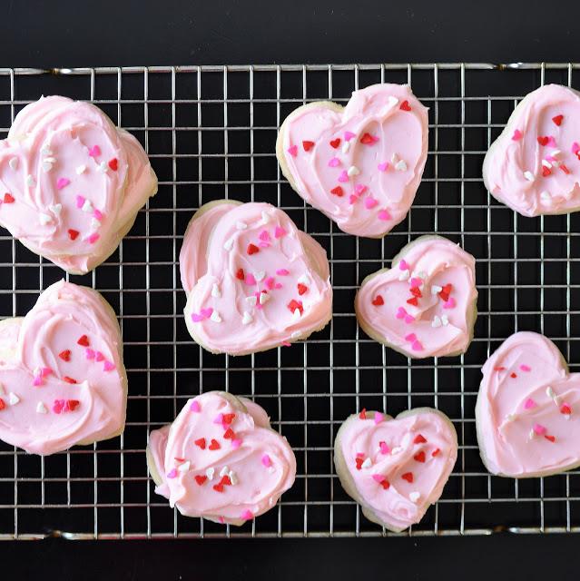 Add cherry or vanilla extract and a couple of drops of red food coloring. Generously spread on fully cooled cookies.