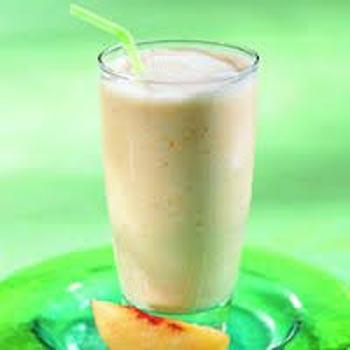 Blend 1 cup peach, 1 cup peach juice, ½ cup coconut milk, ice cream, sugar syrup and ice cubes in the blender.