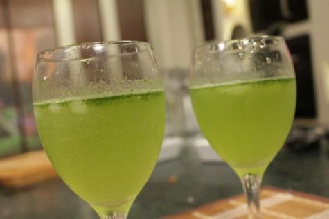 Blend together 2 tbsp lemon juice, 8 mint leaves, 2 tbsp caster sugar, 1 cup ice cubes and 1 cup white soda drink.
