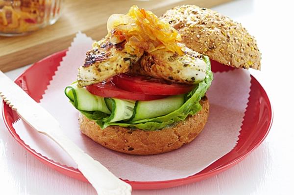 Recipe for Chicken burgers with sweet chilli onion relish