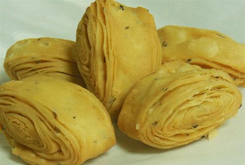 Then cut into thin slices, and roll down these slices and deep fry in oil or ghee on medium low heat until crispy and golden brown. Serve with tea.
