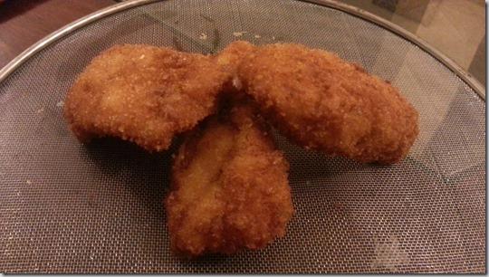 Now heat the oil in wok. Coat the fish with bread crumbs and deep fry.