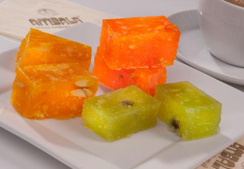 Cut into pieces and serve delicious Muscat halwa.