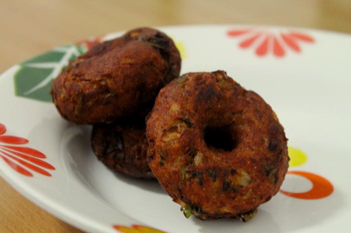 First make cutlets and then make a hole in the center with help of thumb.