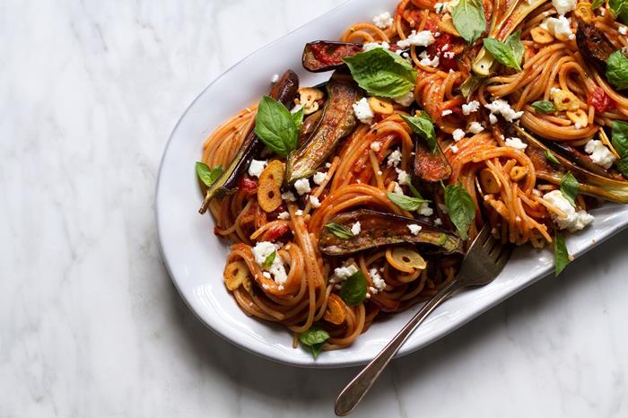 Recipe for Roasted Eggplant And Garlic Pasta