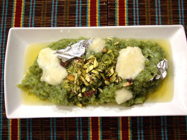 Lastly add 1/2 kg Khoya, 100 gm ground almond and pistachio.